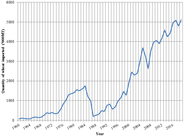 Y represents the quantity of wheat (‘000 MT) imported per year.