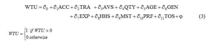 The probit regression was used to determine the factors influencing the willingness to use composite flour that contains HQCF by respondents. The model is given as shown in Equation 3: