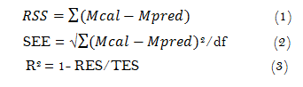 ]. The goodness of fit of the models was evaluated using three indicators namely: lowest of residual sum of squares (RSS) and standard error of estimate (SEE) and highest of the coefficient of determination (R2).