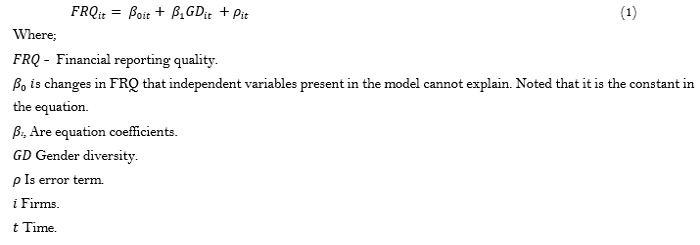 H01: Gender diversity has no statistically significant effect on financial reporting quality of firms listed in Nairobi securities exchange.