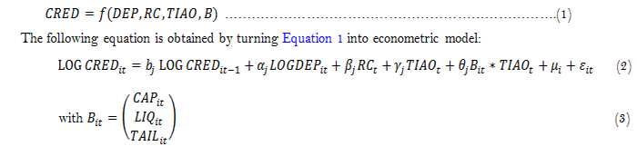 The first empirical study that verified the existence of the bank lending channel is based on aggregate data (Bernanke & Blinder, 1992). In the CEMAC zone, for example, some authors have focused their attention on the issue of the monetary policy transmission of BEAC's (Beguy, 2012; Saxegaard, 2006). The common point of these works is that, these authors make a macroeconomic analysis of the monetary policy transmission by considering each country in the CEMAC zone as a bank. This way of testing the credit channel poses a serious problem of identification. According to Nasha and Dulani (2015) a macroeconomic analysis of the transmission mechanisms does not allow to separate the variation in bank lending explained by the interest rate channel from that explained by lending channel. In doing so, these authors neglect the specificities specific to the behavior of each bank. However, the heterogeneity of bank balance sheets provides an additional argument for improving the understanding of the transmission of monetary policy (Kashyap & Stein, 1995). In this respect, Brissimis and Delis (2009) perceive bank liquidity, size and bank capital as factors internal to the bank that influence the response of bank credit supply to monetary policy shocks.