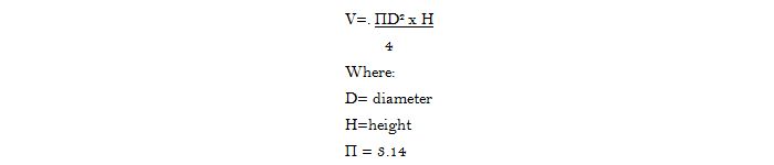 ). The weights of the produced briquettes were determined using digital weighing balance, while the average diameters and heights of the briquettes was taken. The volume of the cylindrical shaped briquettes was determined using the formula
